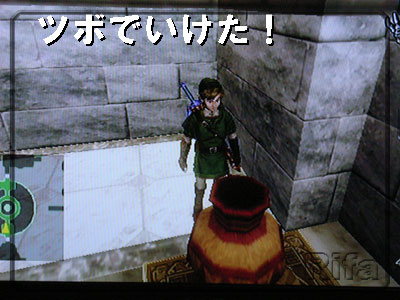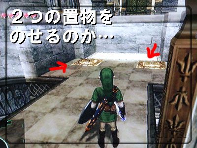 本当は2つの置物を使ってスイッチを押すんだろうけど、下から運んできたツボで押せたー!